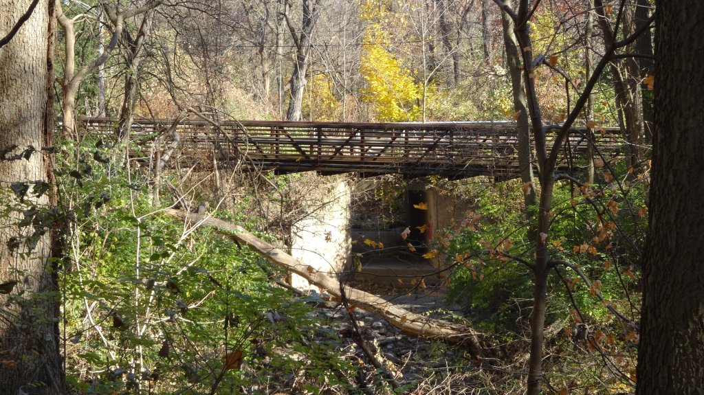 mile 1.1 You will now exit Springdale Cemetery through a fence opening on your right. There should be a yellow post(s) (car stoppers) if you are in the right place. This is also part of the RIG (Rock Island Greenway Trail) You should see a post marking MILE 3.5 on the RIG. IMMEDIATELY turn right as you exit the cemetery. Following the yellow signs for the Rock Island Greenway Trail. Watch closely for your next turn.