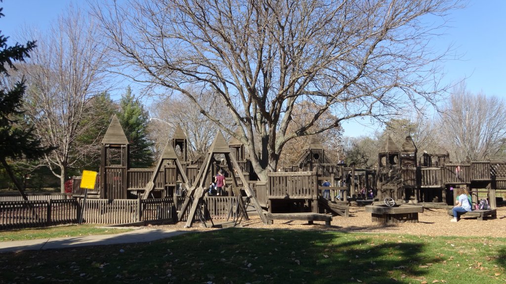 mile 2.0 Turn right hiking past the large wooden playground structure.