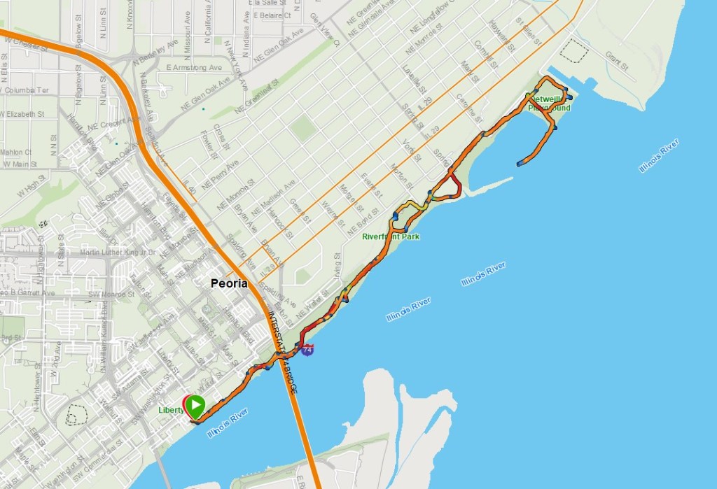 - Trailhead location: Liberty Park – 300 block of SW Waters St, Peoria IL