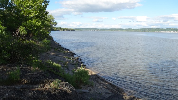 mile 0.65 – in the area of the purple martin sanctuary there is a great place to view the river with two large blocks and a clearing. Just past this area you will join the RIG (Rock Island Greenway) trail. Proceed north following close to the river.