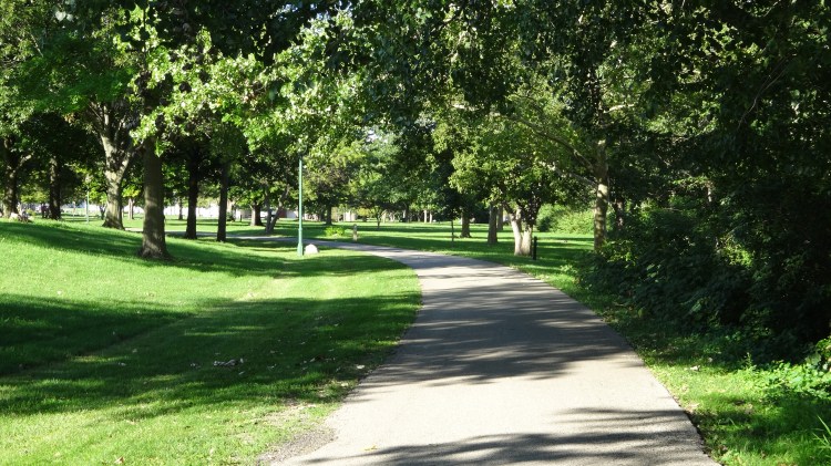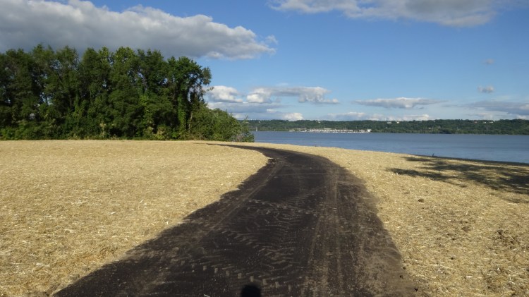 mile 0.9 – bear right at the fork in the trail. You are now in the Riverfront Park. This is a great place to spend some time in the summer. Very shaded in most areas.