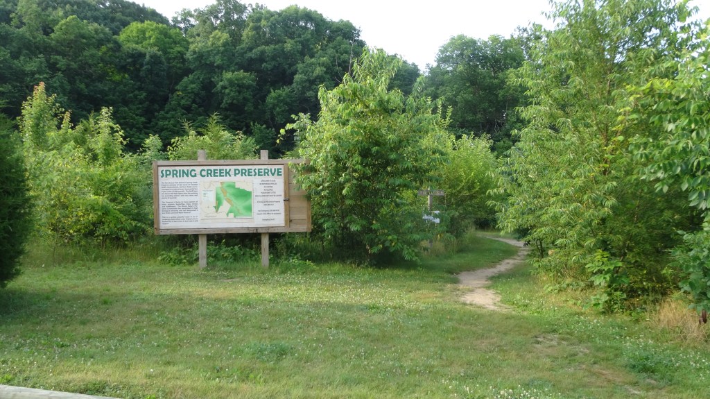 mile 1.1 – turn right at fork in trail. Proceed on woodland loop trail crossing Spring Creek twice