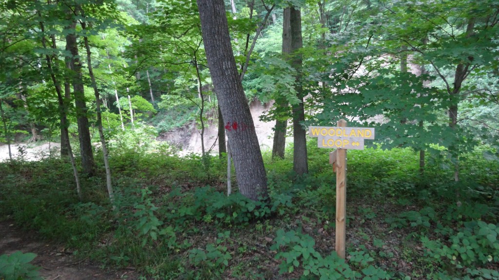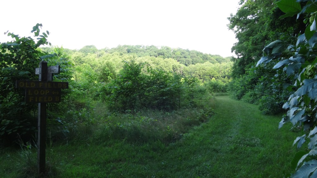 mile 1.5 – trail skirts around “field A”. You will eventually come back to the intersection of North Bluff trail and woodland loop.