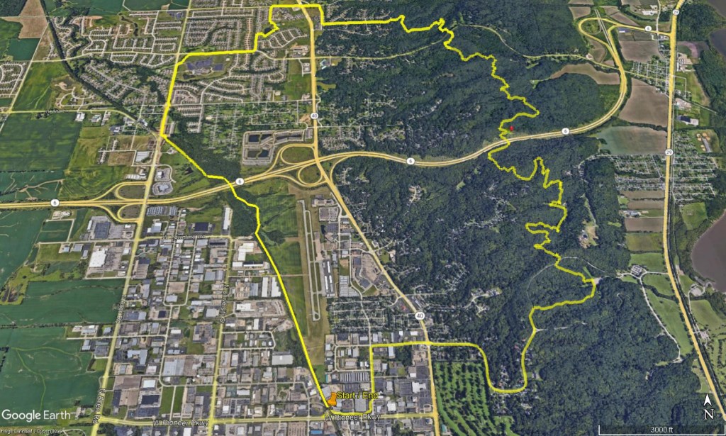 mile 0.0 – Start / End – This hike is described starting and ending at the PPD Rock Island Greenway Trailhead located just west of Connor Co. at 1209 W Pioneer Pkwy, Peoria, IL. At the parking lot you will head northbound on the trail. This is at mile 10.3 along the Rock Island Greenway (RIG) trail. There are several other good locations you could start/end this hike. These include: Timothy Cassidy Park, Robison Park off Mossville Rd, Green Valley Camp off of E Poplet Hollow Rd, and the parking lot for Dogwood and Pine shelters in Detweiller Park. If spacing out options for food/water/restroom amenities is a priority, then starting/ending at the parking for Robison Park along Mossville would give you access to a gas/convivence store stop at the halfway point.